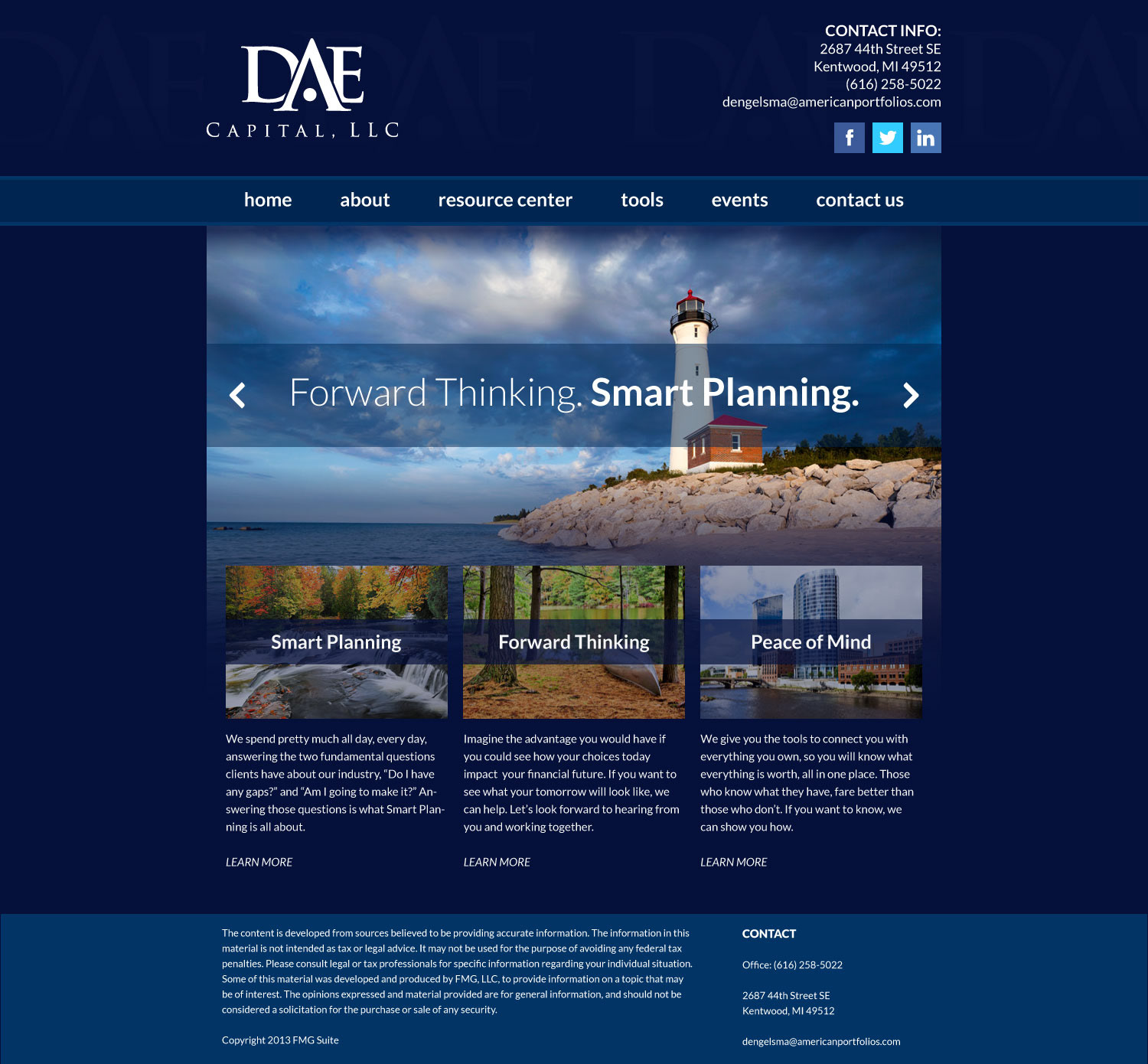 Web design for DAE Capital LLC. In charge of the development of this site's design and mark-up. Designed using Adobe's Illustrator. Coded design using html5, css3 and jquery technologies.