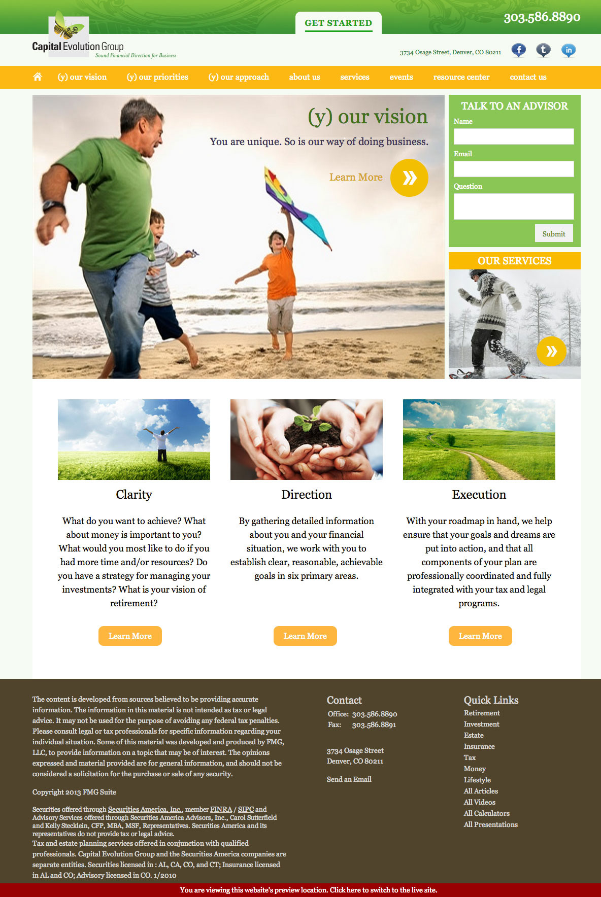 Web design for Capital Evolution Group. In charge of the development and editing of this site's mark-up. Coded design out of the photoshop mockup, using html, css and jquery technologies.